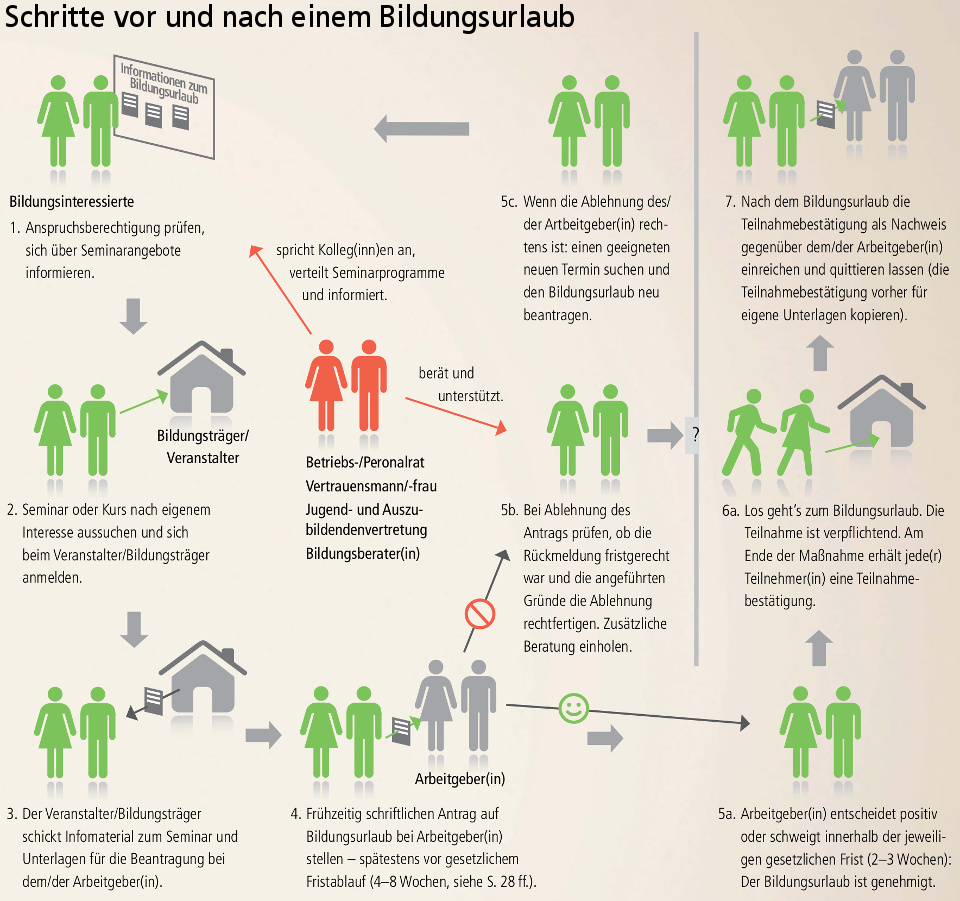 (Hinweis: Die Ausführungen beziehen sich auf einen Bildungsurlaub, bei dem Ihr(e) Arbeitgeber*in seinen/ihren Sitz in NRW hat. Sollten Sie weitere Infos benötigen oder ein anderes Bundesland für Sie zutreffen, erkundigen Sie sich bitte über die dort geltenden Bestimmungen.)